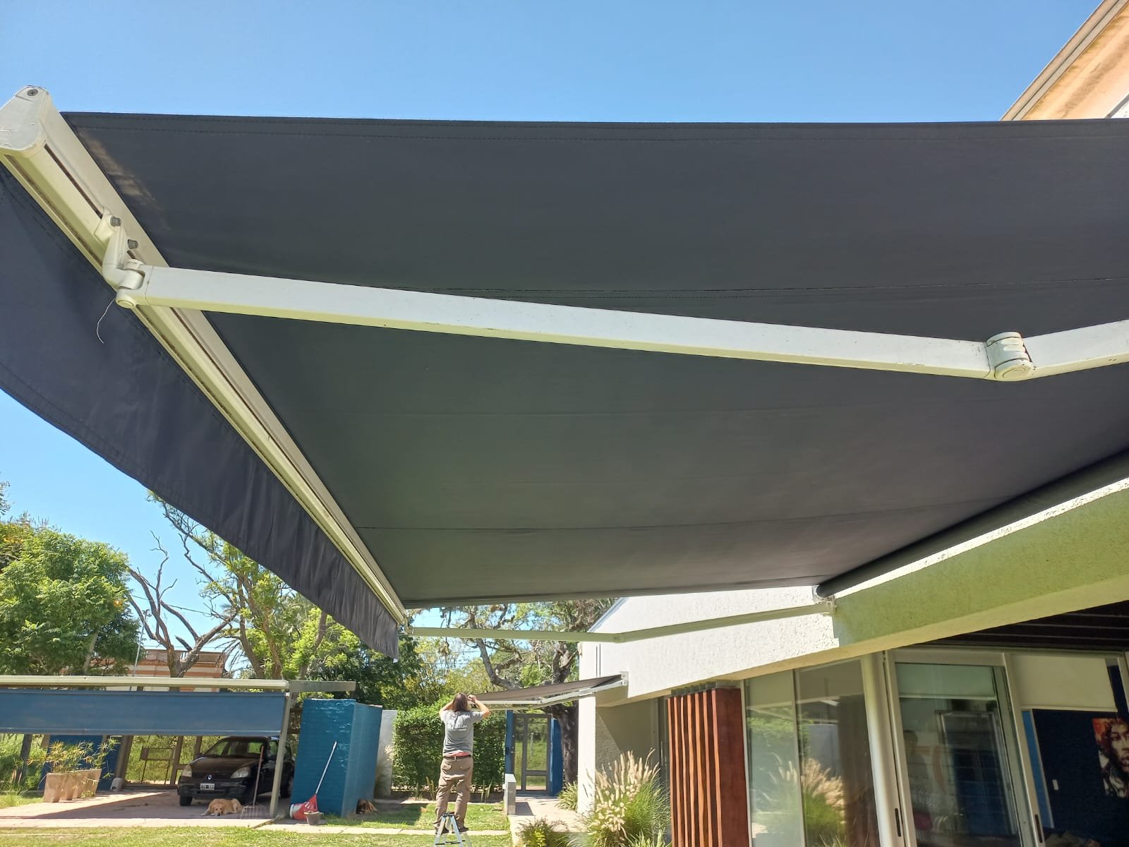 Es el mas utilizado para generar espacios de sombra al aire libre, es sumamente versátil se ajusta a todas las necesidades y lugares de instalación. Se destaca por ser el mas moderno del mercado, se caracteriza por ocultar sus brazos extensibles bajo la lona gracias a su moderno sistema de brazos articulados plegables